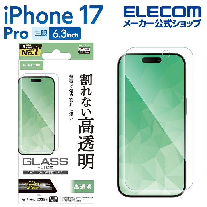 エレコム iPhone 17 Pro 用 ガラスライクフィルム 薄型..