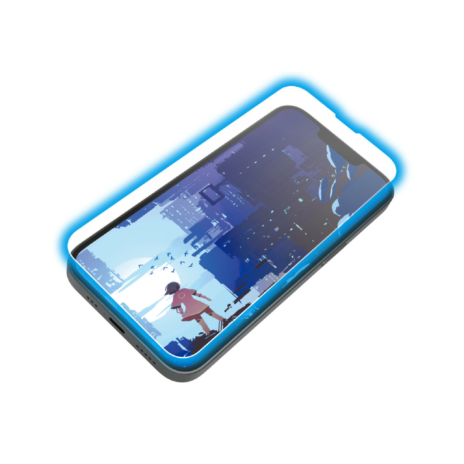 iPhone16e ガラスフィルム BLカット フレーム エレコム..